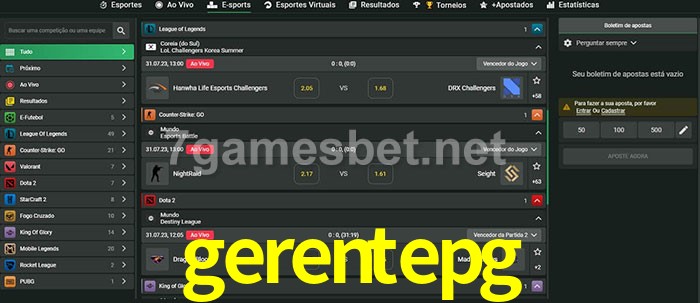 O gerentepg oferece uma grande seleção de opções de apostas em e-sports com probabilidades competitivas